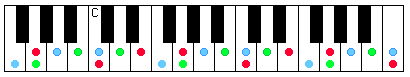 (blue), and G-major (green). To improvise, just play lots of red notes